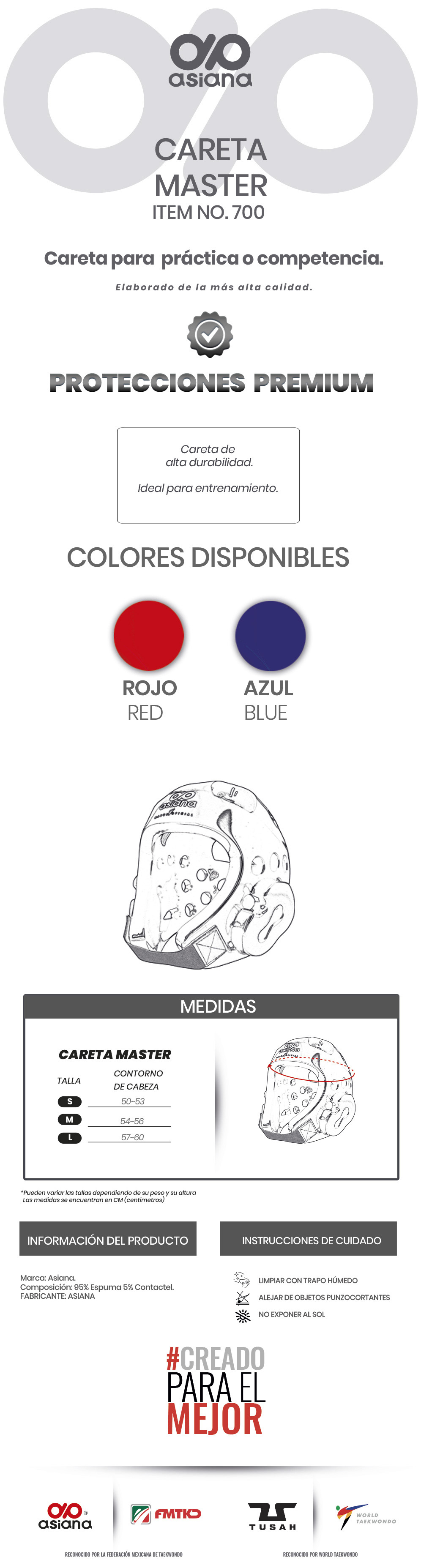 Careta Oficial de competencia y entrenamiento marca oficial de la Federación Mexicana de Taekwondo, calidad Premium, diseño moderno, fabricada en EVA de alta calidad con tira desprendible en la frente para evitar que el sudor llegue a los ojos