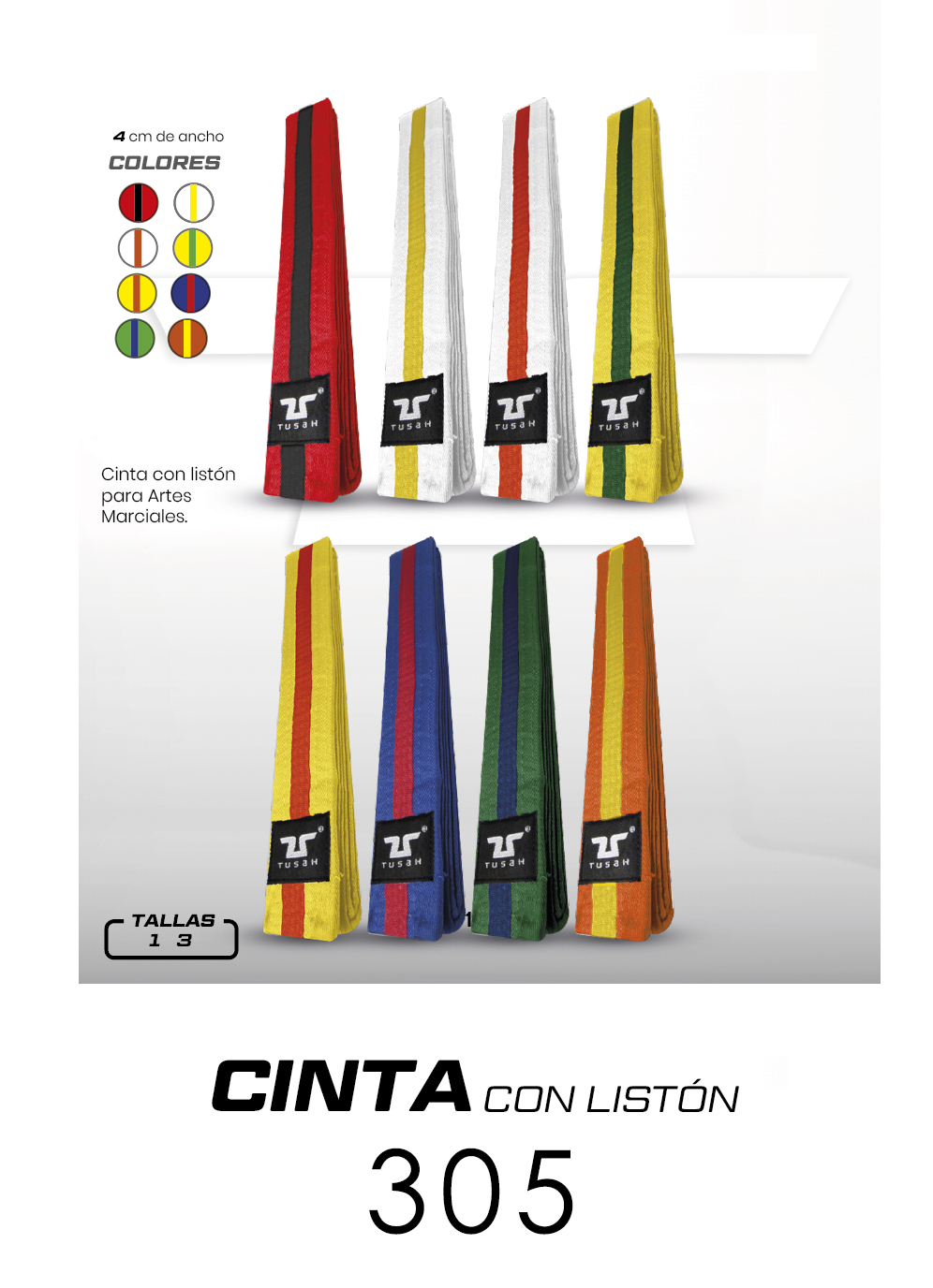 Cinta para cualquier Arte Marcial disponible en 8 combinaciones de color de 4 cm de ancho y costura con dobles en los extremos.