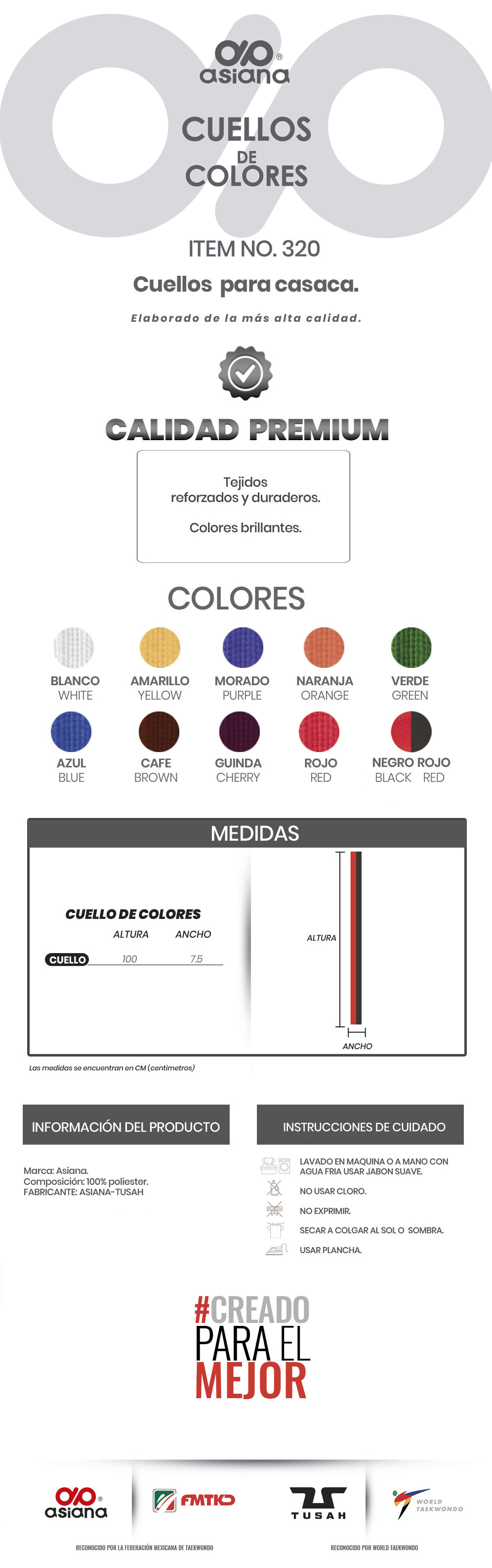 Cuello para uniforme de Taekwondo, disponible en 10 colores.