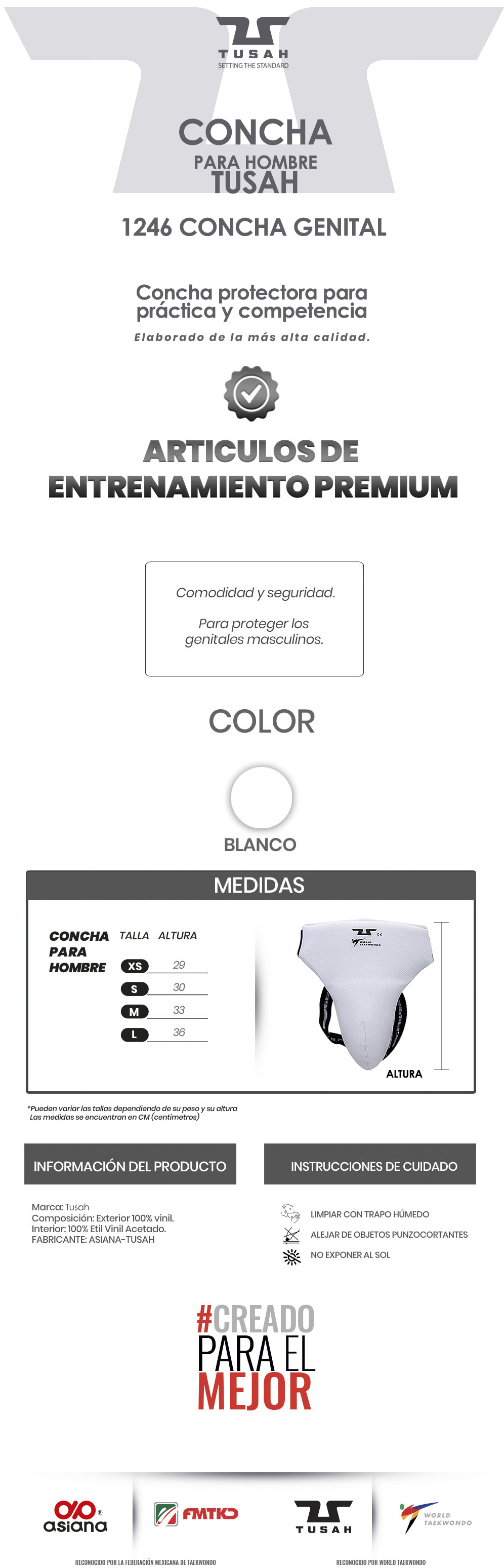Concha protectora genital para competencia y entrenamiento aprobada por la World Taekwondo, con correas de velcro ajustable