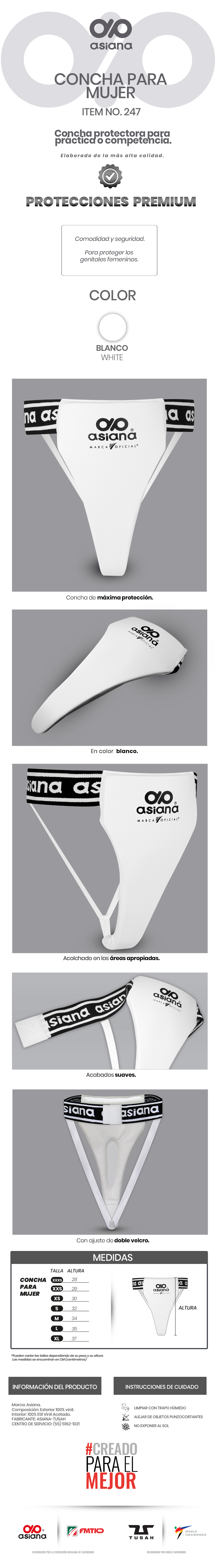 Concha protectora genital para competencia y entrenamiento marca oficial de la Federación Mexicana de Taekwondo, con correas de velcro ajustable