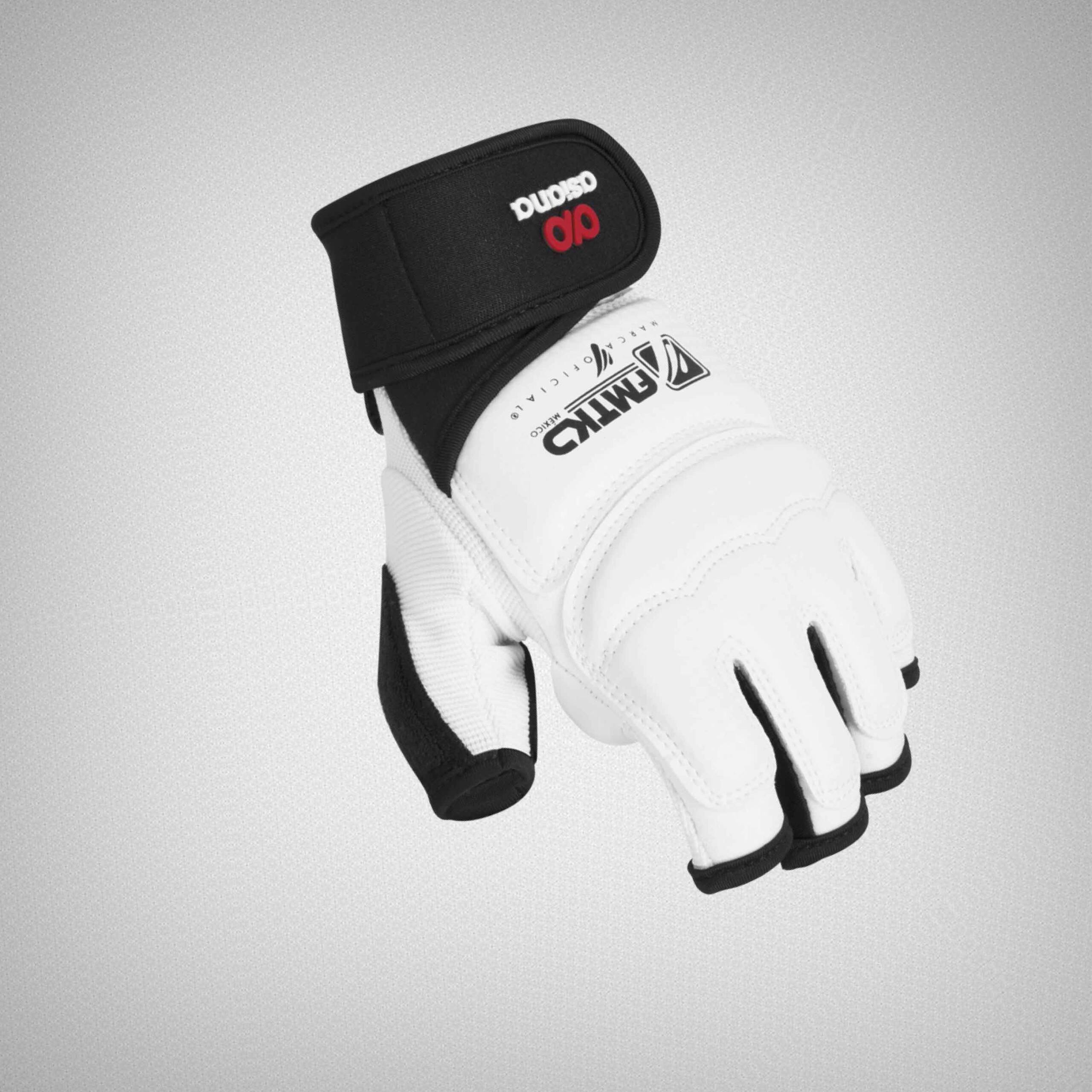 Guante para competencia y entrenamiento marca oficial de la Federación Mexicana de Taekwondo, con correas de velcro ajustable
