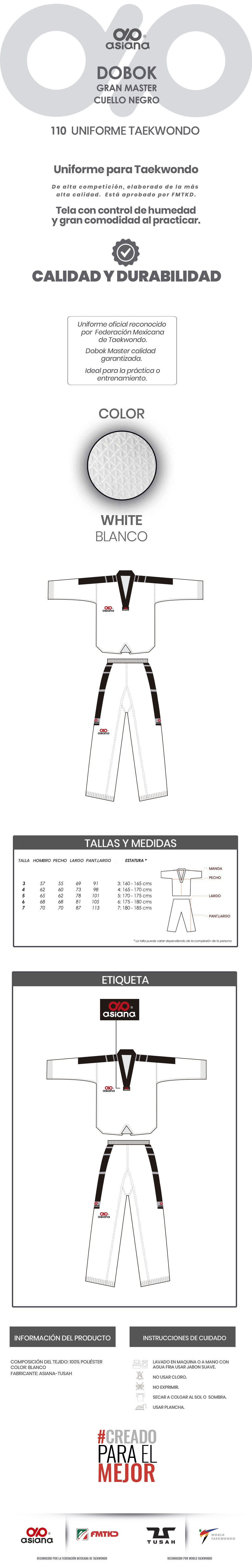 Uniforme de alta calidad, ideal para la práctica y competencia, tela fresca, uniforme reconocido por la FMTKD, con bordado de la Federación Mexicana de Taekwondo en el brazo derecho.