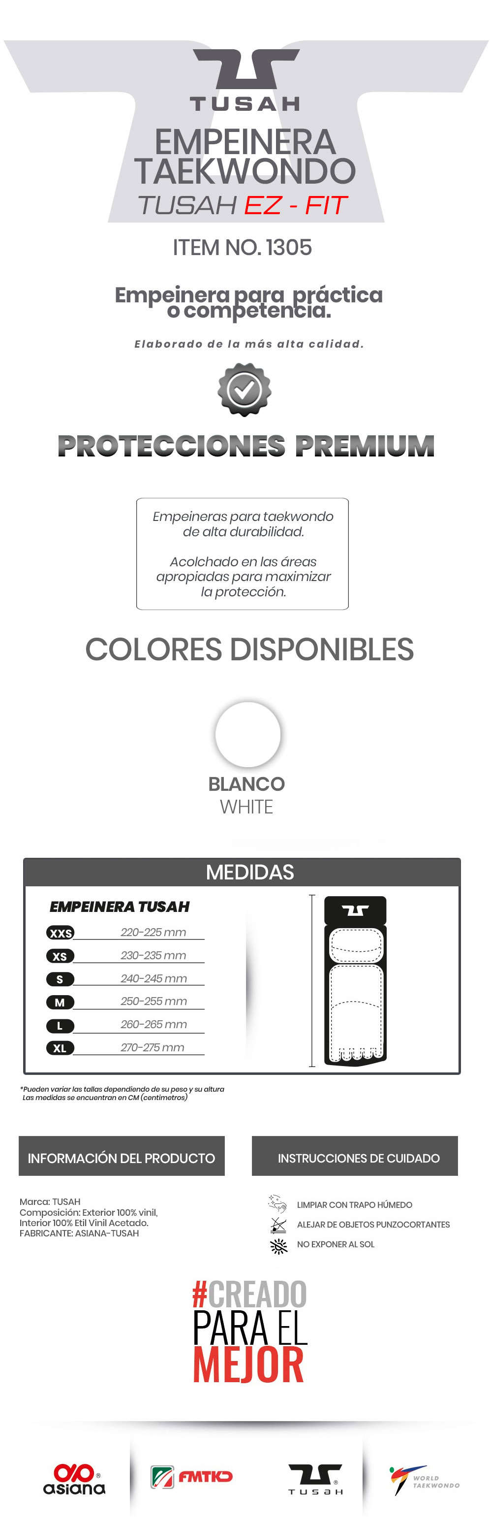 Empeinera para competencia y entrenamiento aprobada por la World Taekwondo, con correas de velcro ajustable